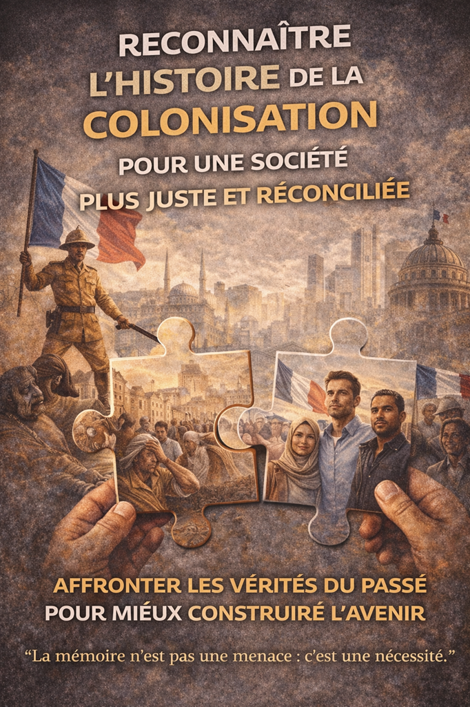 La colonisation française a façonné des mondes entiers, et ses conséquences sont encore visibles dans les relations internationales, les sociétés post-coloniales et les interactions sociales contemporaines. Plutôt que de se contenter de récits partiels ou idéologiques, il est nécessaire d’engager un travail de mémoire rigoureux, partagé et démocratique. Notre position est claire : la mémoire de la colonisation doit être étudiée, enseignée, confrontée et reconnue pour permettre à notre société de dépasser les blessures historiques et avancer ensemble vers un avenir de justice, d’égalité et de fraternité.